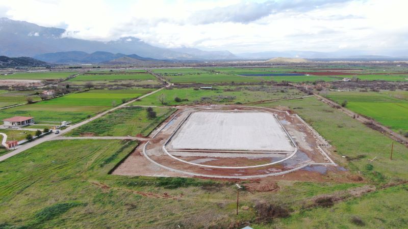 - στίβο 400 μ., 8 διαδρομών, με ταρτάν πάχους 13-15 χιλ., και με όλες τις υποκείμενες απαραίτητες στρώσεις,