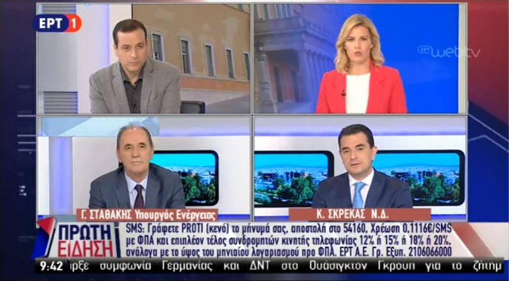 Καλεσμένος στην πρωινή εκπομπή της ΕΡΤ1 με συνομιλητή τον Υπουργό Περιβάλλοντος και Ενέργειας κ. Σταθάκη, ήταν ο Τομεάρχης Περιβάλλοντος και Ενέργειας της Ν.Δ. και Βουλευτής Τρικάλων κ. Κώστας Σκρέκας.