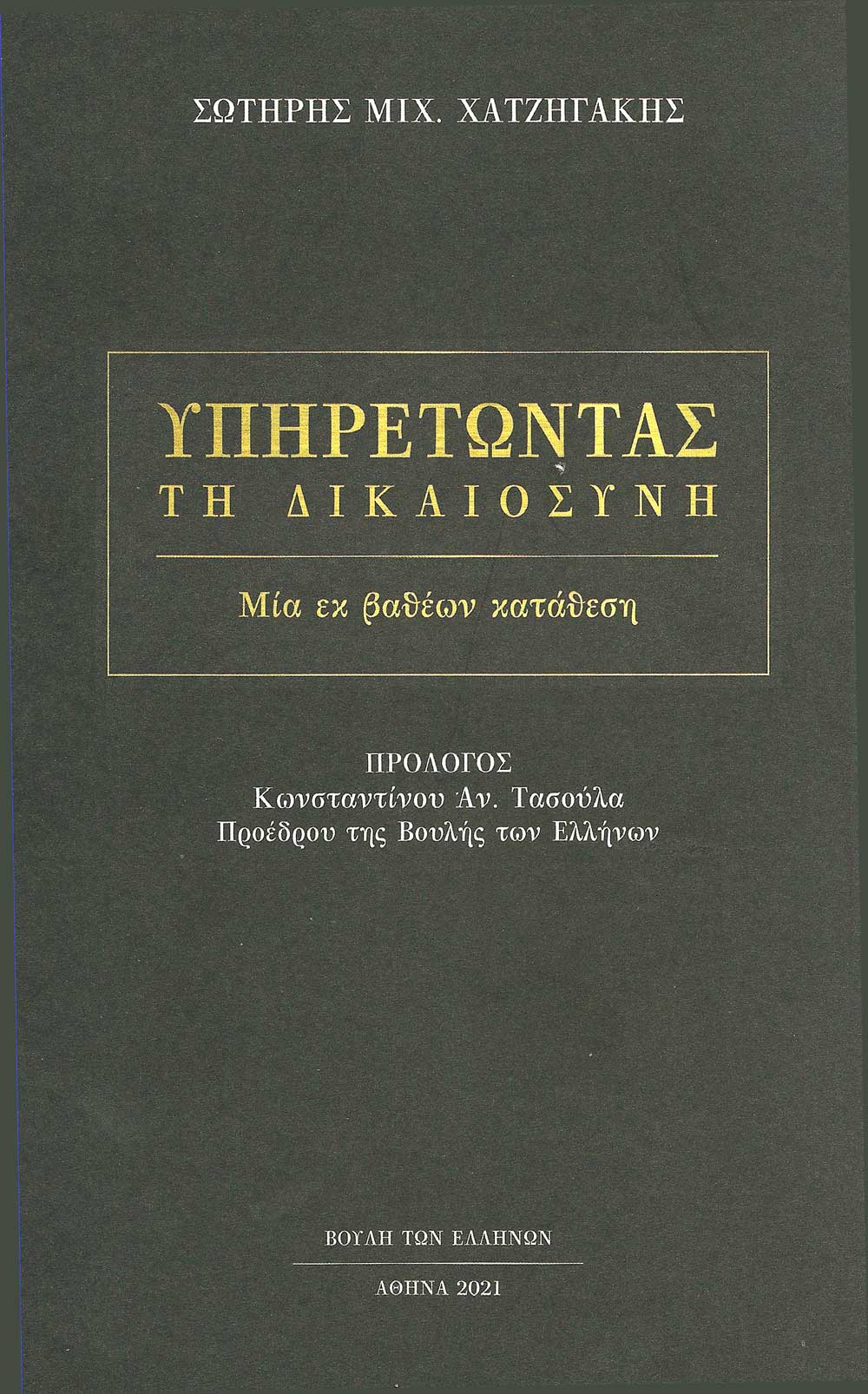 Εκδόθηκε και κυκλοφορεί από τις εκδόσεις της Βουλής των Ελλήνων το 18ο βιβλίο του πρώην υπουργού Σωτήρη Χατζηγάκη. Το πόνημά του αυτό, πραγματεύεται τα κυρίαρχα ζητήματα που απασχόλησαν την Ελληνική Δικαιοσύνη κατά την διάρκεια της υπουργίας του (Βατοπέδι, Siemens, Παραδικαστικό κ.τ.λ.)