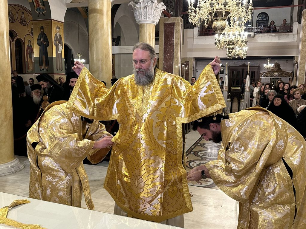 Όπως κατέγραψε το trikalavoice.gr ο κ. Χρυσόστομος ιερούργησε στον Ιερό Ναό Αγίων Κωνσταντίνου και Ελένης, συμμετοχή κληρικών της Μητροπόλεώς μας και όχι μόνο, ευχαρίστησε όλους για τις ευχές και τις προσευχές τους για το πρόσωπό του υπογραμμίζοντας ότι “έχουμε μαζί μας την υπερβολήν της δυνάμεως του Θεού, η οποία μας σκεπάζει. Από καρδιάς σας ευχαριστώ όλους για την παρουσία σας και τις ευχές και τις προσευχές σας, και σας επιδαψιλεύω την Αρχιερατική μου ευλογία ολόθυμη και αμέριστη, επικαλούμενος επι πάντας την χάριν του Παναγίου Πνεύματος και του Αγίου Ιωάννου του Χρυσοστόμου.”