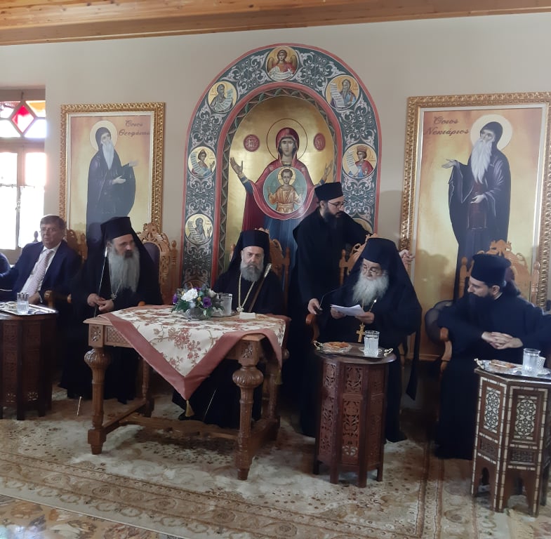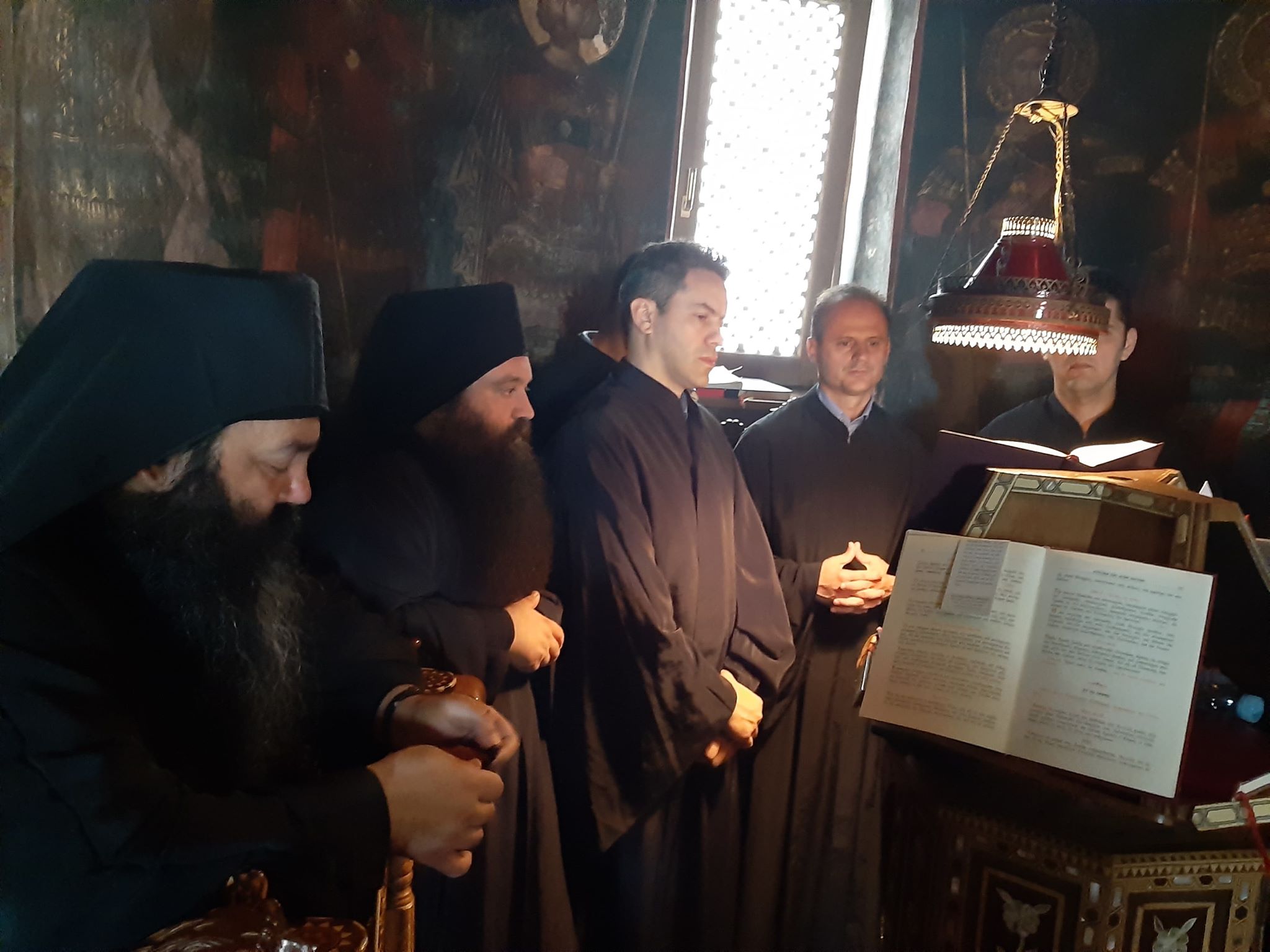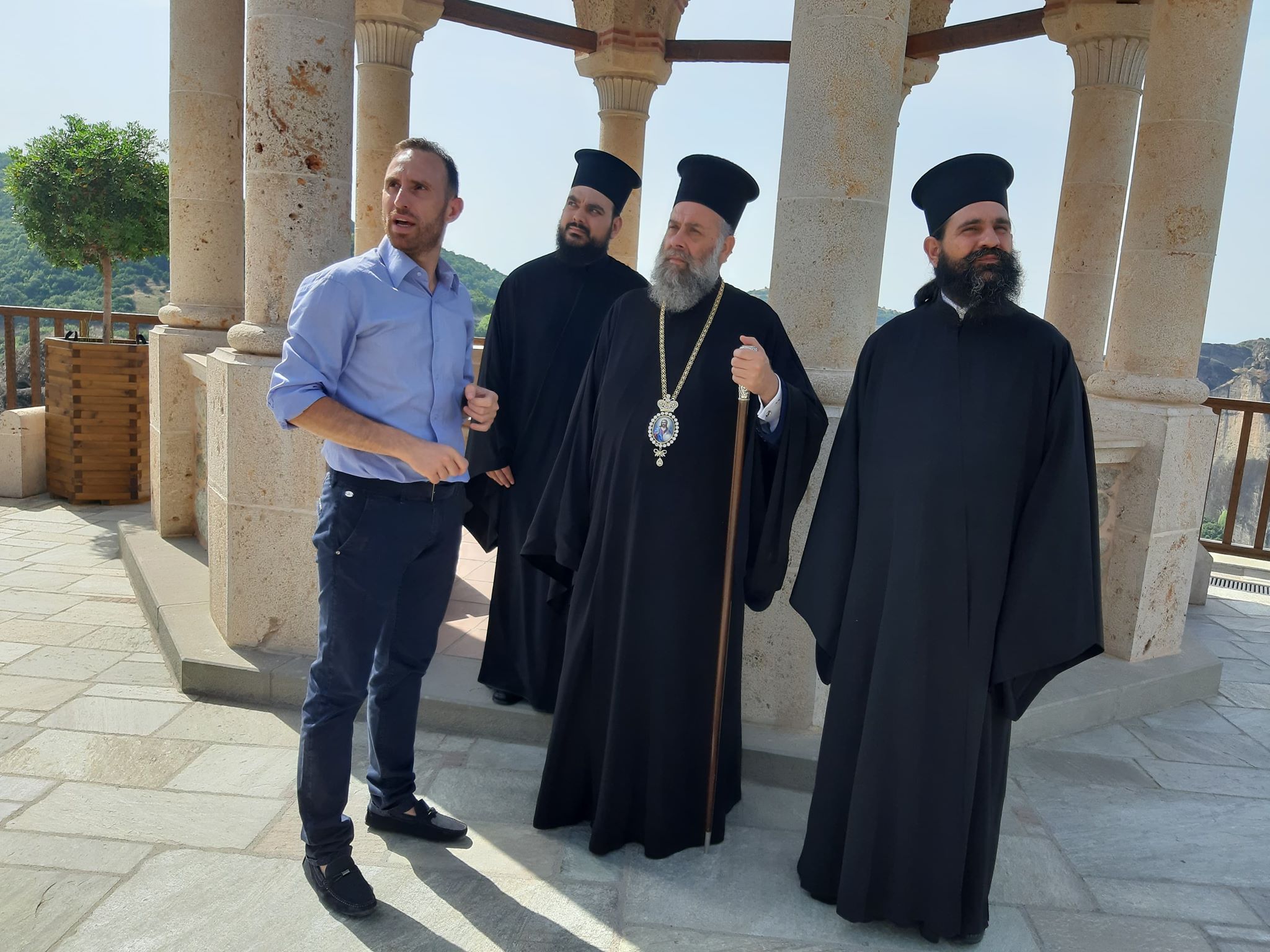 Με το πέρας της Θείας Λειτουργίας ο κ. Τιμόθεος ξεναγήθηκε στο σκευοφυλάκιο της Μονής όπου φυλάσσονται θησαυροί αιώνων, από τον υπεύθυνο αυτού Αλέξανδρο Σχορτσιανίτη.