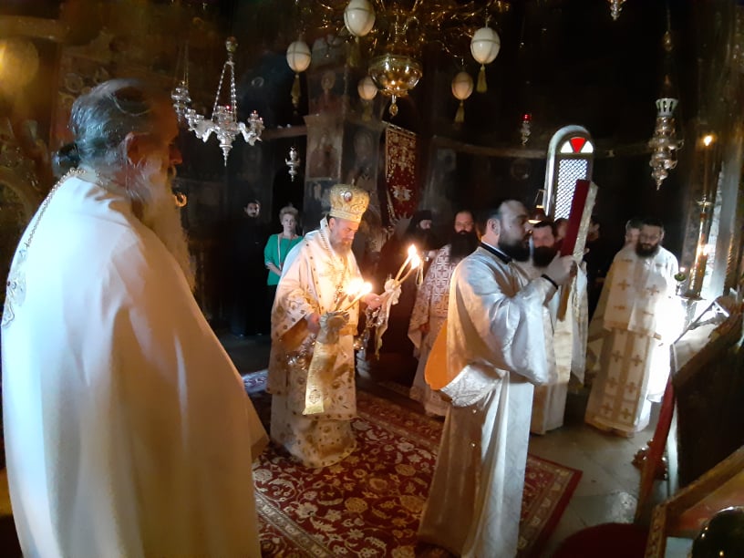 Το πρωί της Κυριακής τελέστηκε Αρχιερατική Θεία Λειτουργία, ιερουργούντος του Μητροπολίτος Θεσσαλιώτιδος και Φαναριοφερσάλων Τιμοθέου, συμμετοχή δε Ηγουμένων των λοιπών Μονών της Αγίας Πολιτείας των Σταγών. Συμπροσευχόμενος παρέστη ο οικείος Μητροπολίτης Σταγών & Μετεώρων Θεόκλητος, ενώ ήταν εκατοντάδες οι πιστοί που ανηφόρισαν για να τιμήσουν τη μνήμη του Αγίου.