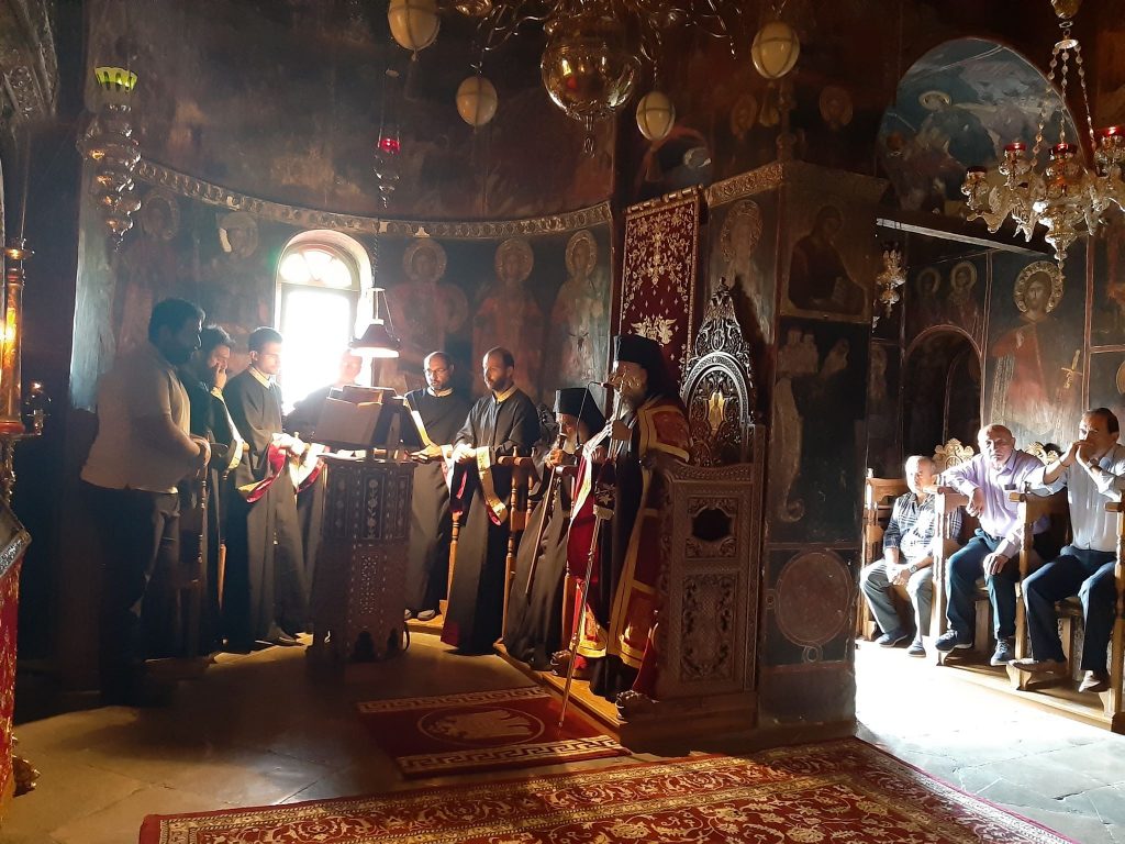 Το πρωί της Κυριακής τελέστηκε Αρχιερατική Θεία Λειτουργία, ιερουργούντος του Μητροπολίτος Θεσσαλιώτιδος και Φαναριοφερσάλων Τιμοθέου, συμμετοχή δε Ηγουμένων των λοιπών Μονών της Αγίας Πολιτείας των Σταγών. Συμπροσευχόμενος παρέστη ο οικείος Μητροπολίτης Σταγών & Μετεώρων Θεόκλητος, ενώ ήταν εκατοντάδες οι πιστοί που ανηφόρισαν για να τιμήσουν τη μνήμη του Αγίου.