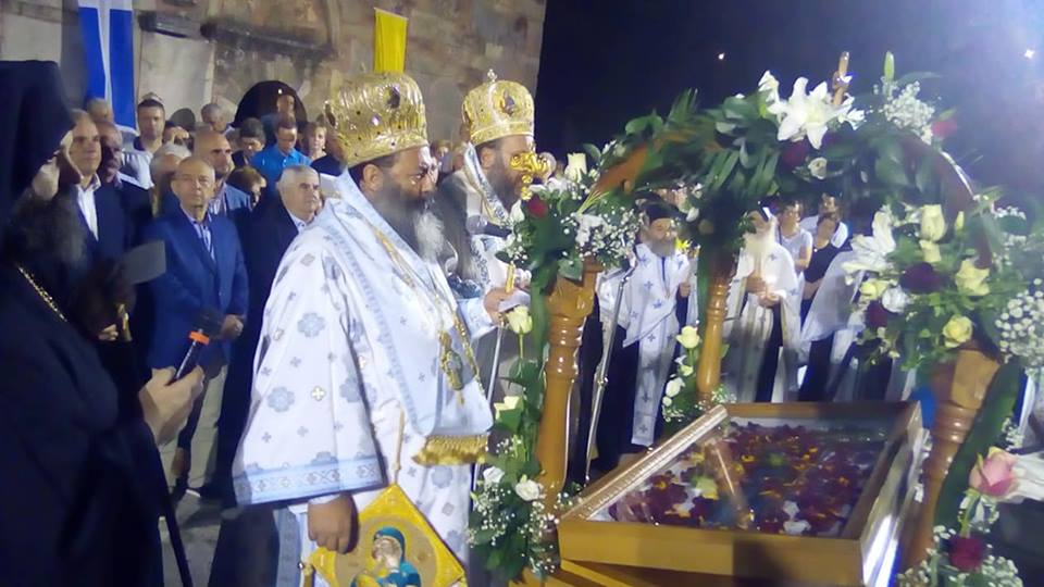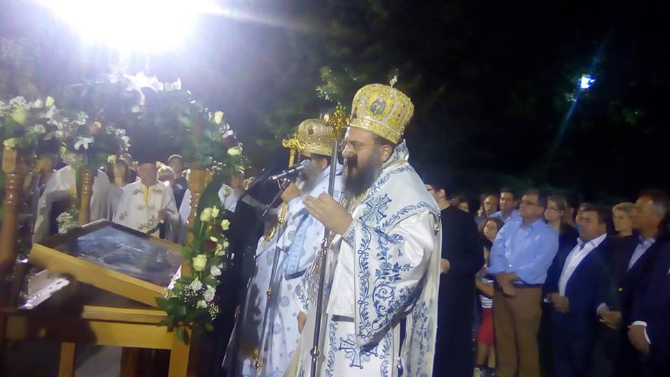 Το απόγευμα της Τετάρτης τελέστηκε στο καθολικό του Ναού, ο οποίος είναι Μετόχι της Μονής Δουσίκου, Μέγας Πανηγυρικός Εσπερινός της Αποδόσεως της Κοιμήσεως της Θεοτόκου, χοροστατούντος του Μητροπολίτου Λαγκαδά Ιωάννη, συγχοροστατούντος δε του οικείου Ποιμενάρχου κ. Χρυσοστόμου.