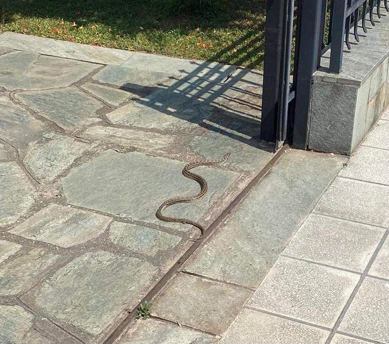 Πήγε να δει τη συμβαίνει και που είχε σκαλώσει και έπεσε πάνω σε… φίδι που είχε σφηνωθεί εκεί!!!… Τα χρειάστηκε, όμως με ψυχραιμία το απελευθέρωσε και αυτό έφυγε προς… άλλες πολιτείες και αυλές.