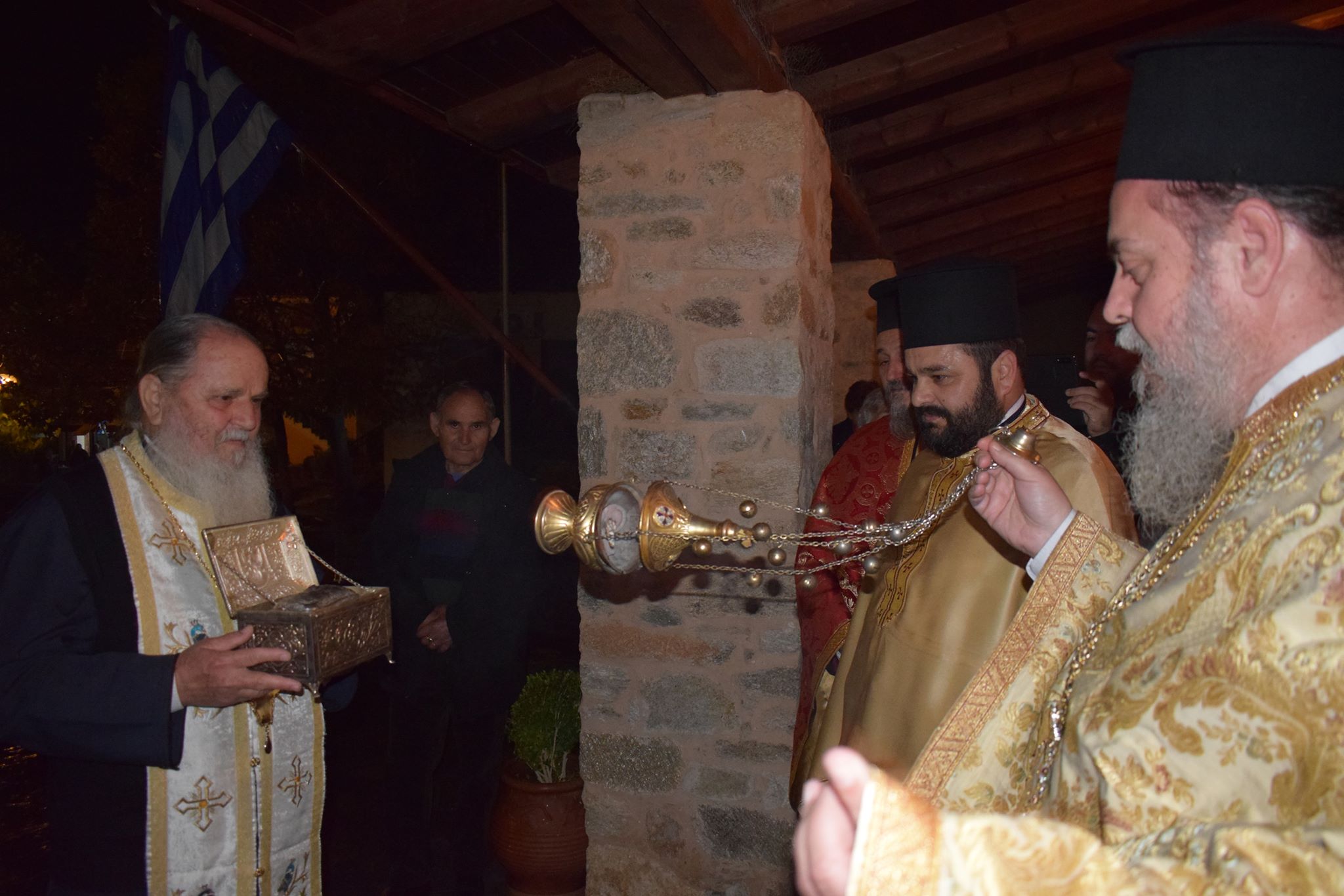 Τα Λείψανα κόμισε ο ευλαβής πατέρας Γεώργιος Σαμαράς, εφημέριος του χωρίου του Κλεινοβού και πατέρας του πατρός Ευάγγελου Σαμαρά, εφημερίου εδώ και μερικούς μήνες του Ναού στο Μέγα Ελευθεροχώριο. Τελέστηκε Μέγας Πανηγυρικός Εσπερινός και ακολούθως Ιερά Αγρυπνία ενώπιον των Λειψάνων των Αγίων.