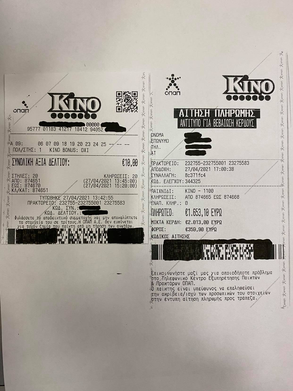 Είχε έμπνευση, έπαιξε ΚΙΝΟ στο πρακτορείο ΟΠΑΠ επί της Καραϊσκάκη 63, έπιασε 8 στα 9 νούμερα και… πήγε ταμεία!… Εύκολα, απλά, όμορφα…