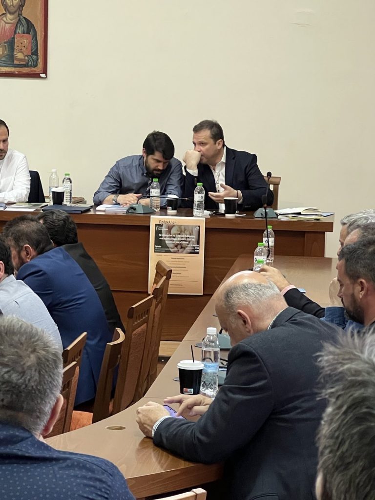 Στην εκδήλωση της ΔΕΕΠ Τρικάλων, παρουσία των, Κώστα Μπαγινέτα, Γενικού Γραμματέα στο Υπουργείο Αγροτικής Ανάπτυξης, Παναγιώτη Χατζηνικολάου, Διευθύνοντος Συμβούλου του ΕΛΓΟ Δήμητρα, Νίκου Δούκα, Συμβούλου στο Υπουργείο Αγροτικής Ανάπτυξης και πρώην Αντιπροέδρου του ΕΛΓΑ, και Ανδρέα Καρασαρίνη, Γραμματέα Αγροτικών Φορέων της ΝΔ, απηύθυνε χαιρετισμό ο Θανάσης Λιούτας, Βουλευτής του Νομού μας, υπογραμμίζοντας τη μέγιστη στήριξη του Πρωθυπουργού, Κυριάκου Μητσοτάκη, προς την ελληνική γεωργία και κτηνοτροφία μας καθ’ όλη την περίοδο της διακυβέρνησης της ΝΔ.