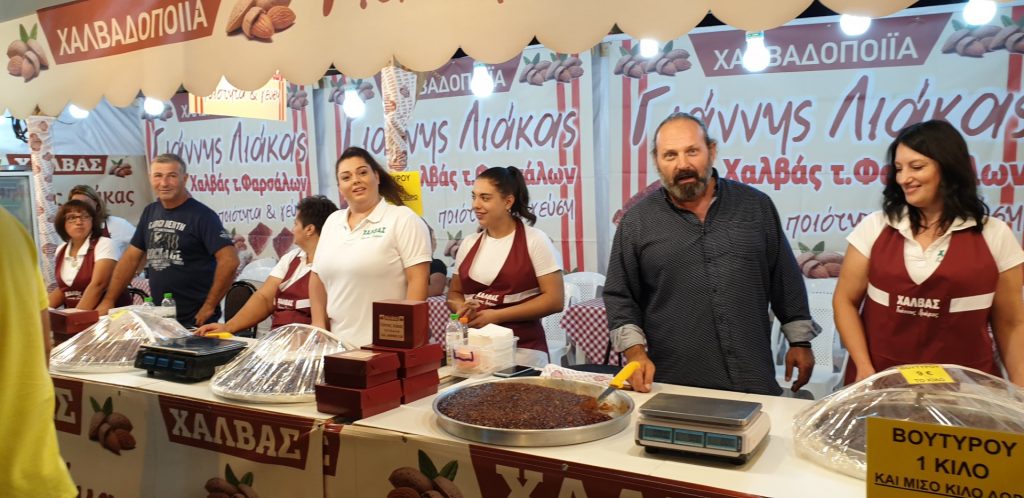 Από φέτος έχουν μπει σφήνα στους μεγάλους παίκτες του κλάδου του χαλβά τ. Φαρσάλων και νέοι παρασκευαστές οι οποίοι διεκδικούν και κερδίζουν μερίδιο στην αγορά. Το γεγονός κάνει ακόμη πιο… δραματική την κατάσταση που εξελίσσεται περνώντας μπροστά από τους πάγκους με… μαχαίρια να ίπτανται, χέρια με μερίδες για δοκιμή να βγαίνουν μπροστά σου κλπ.!!!… Από τα ωραιότερα σκηνικά του παζαριού… Μάχη μέχρις εσχάτων.
