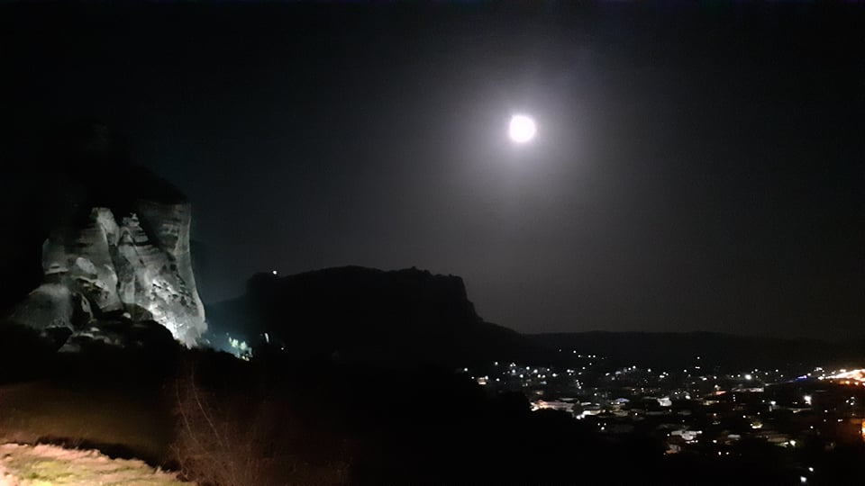 Εντυπωσιακή η πανσέληνος του Φλεβάρη από τα μοναδικά Μετέωρα.