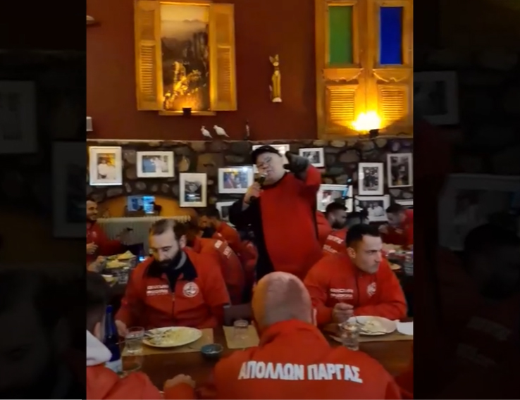 Χαρακτηριστικά, όπως κατέγραψε το trikalavoice.gr, ερμήνευσε το μεσημέρι της Κυριακής σε παίκτες και τεχνική ηγεσία του Απόλλωνα Πάργας που γευμάτισαν στην ταβέρνα του το επικό άσμα του Μητροπάνου “πες μου που πουλάν’ καρδιές να σου πάρω μια”…