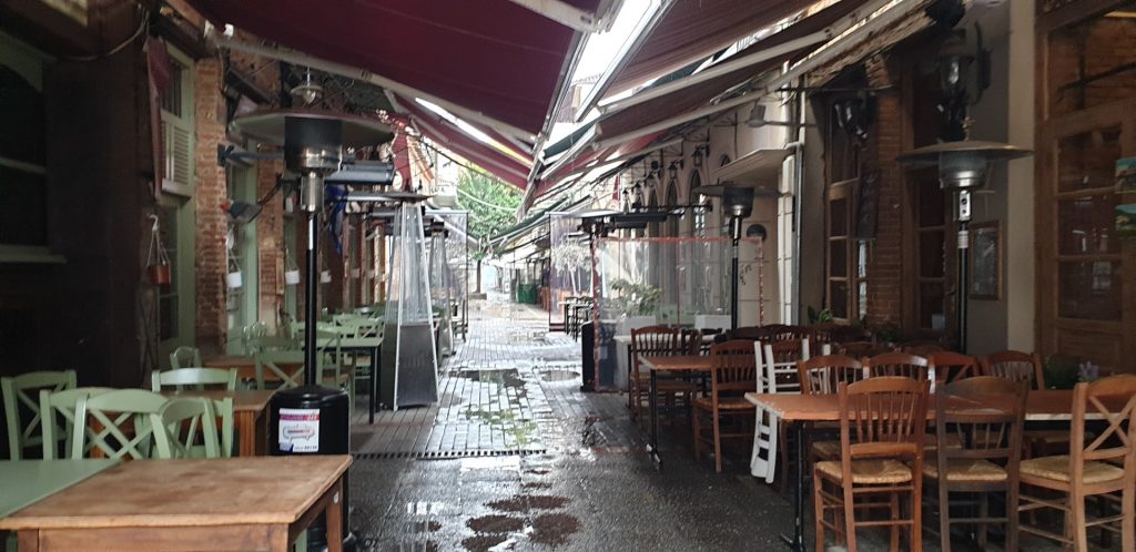 Άλλα χρόνια, τέτοια ώρα, τέτοια μέρα γίνονταν… πανικός στα Μανάβικα. Σήμερα οι ταβέρνες είναι κλειστές, τα τραπέζια μαζεμένα, ούτε λάδι απ’ τον τηγανητό μπακαλιάρο μυρίζει, ούτε σκόρδο απ’ τη σκορδαλιά, ούτε φωνές εν ευθυμία ανθρώπων (ελέω τσιπουροκατάνυξης) ακούγονται… Ερημιά…