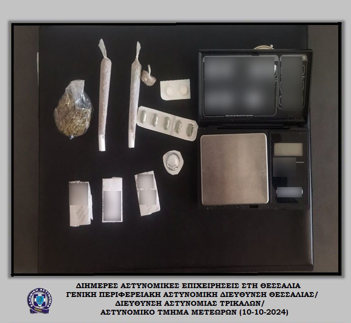 Συνελήφθη, την 8-10-2024 το μεσημέρι σε περιοχή του Δήμου Πύλης Τρικάλων, από αστυνομικούς του Αστυνομικού Τμήματος Μετεώρων, ημεδαπός άνδρας, για παράβαση της νομοθεσίας περί ναρκωτικών.
