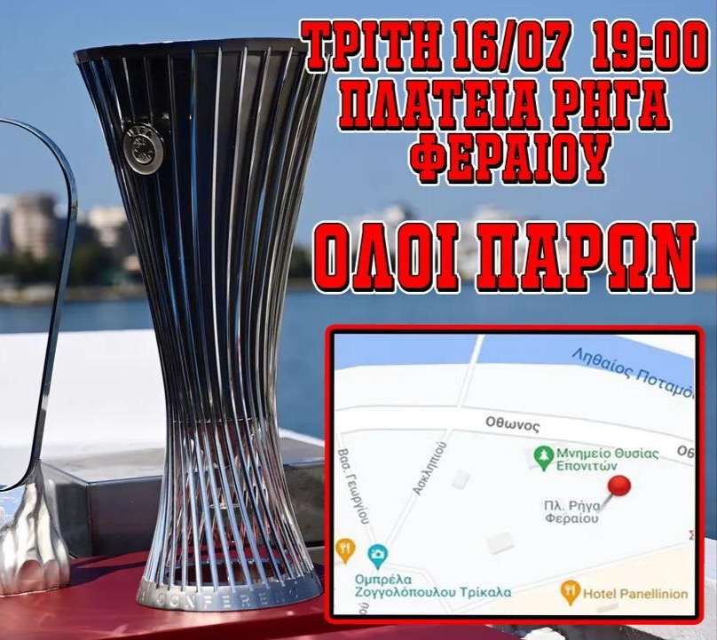 Η πιο μεγάλη μέρα… έρχεται στα Τρίκαλα. Την Τρίτη 16 Ιουλίου η πόλη υποδέχεται τα Ευρωπαϊκά τρόπαια του Θρύλου, το Conference League και το Youth League της ομάδας νέων.