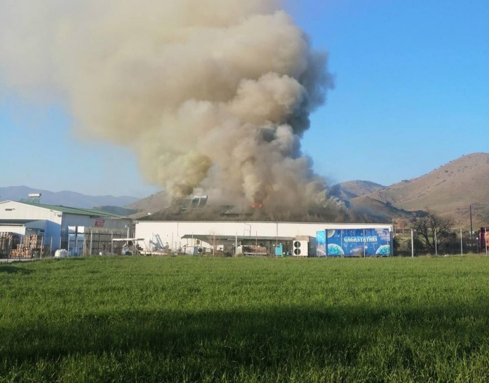 Φωτιά ξέσπασε το μεσημέρι της Τετάρτης στο εργοστάσιο της εταιρείας ΥΦΑΝΤΗΣ στην περιοχή του Γριζάνου.