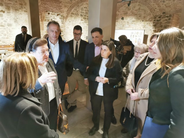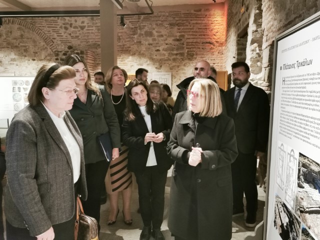 Πριν την έναρξη της σύσκεψης, η κ. Μενδώνη ξεναγήθηκε σε έκθεση που φιλοξενείται στο Δίδυμο Οθωμανικό Λουτρό, από την προϊσταμένη της Εφορείας Αρχαιοτήτων Τρικάλων κ. Κρ. Μαντζανά. Η περιοδική αυτή έκθεση έχει τίτλο «Ο Πηλός μιλάει – Αρχαιολογικά ευρήματα από τις ανασκαφές της περιοχής των Τρικάλων».