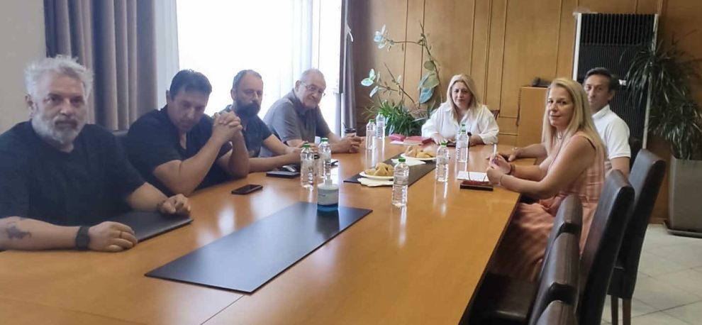 Σύσκεψη εργασίας πραγματοποίησε σήμερα 1η Αυγούστου, η Αντιπεριφερειάρχης Π.Ε. Τρικάλων Χρύσα Ντιντή στο γραφείο της με τον Γιώργο Ανδρέου, συνθέτη, στιχουργό και σύμβουλο Πολιτισμού της Περιφέρειας Θεσσαλίας και τον Αλέξανδρο Ζουριδάκη, σύμβουλο επίσης Πολιτισμού της Περιφέρειας Θεσσαλίας, παρουσία της προϊσταμένης του τμήματος Τουρισμού Πολιτισμού της Π.Ε. Τρικάλων Νάντιας Αλεξοπούλου.