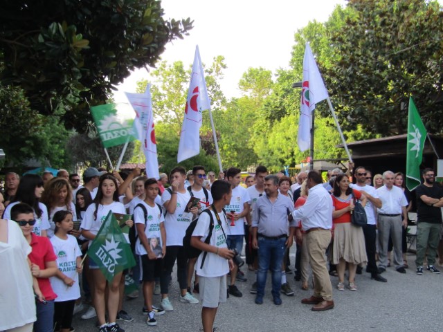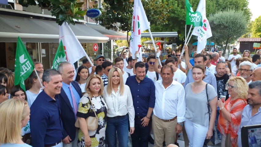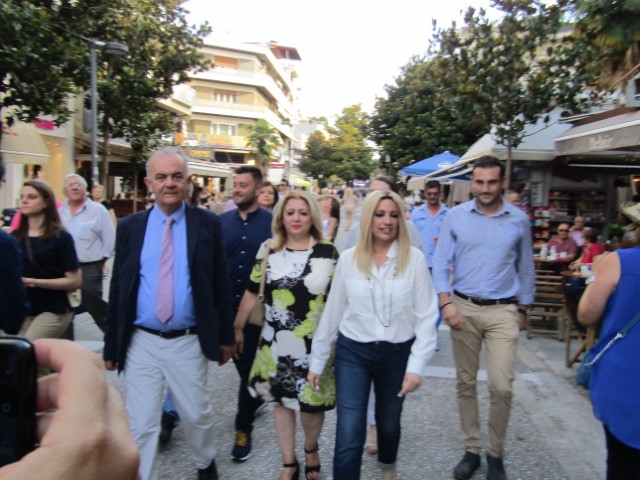 Περπάτησε μέχρι το περίπτερο του ΚΙΝ.ΑΛ. όπου έγινε δεκτή από τους υποψηφίους βουλευτές του κόμματος (Φωτεινή Αναστασίου, Γιώργο Ηλιάδη, Σωτήρη Μπλέτσα, Χρύσα Ντιντή, Κωνσταντίνο Παπαευθυμίου, Κώστα Φαμίση) και προχώρησε σε σύντομες δηλώσεις, «χτυπώντας» τόσο τον ΣΥΡΙΖΑ, όσο και τη Ν.Δ., επιμένοντας στην ανάγκη στήριξης του κόμματος ως «τη φωνή της λογικής» στις εκλογές της Κυριακής.