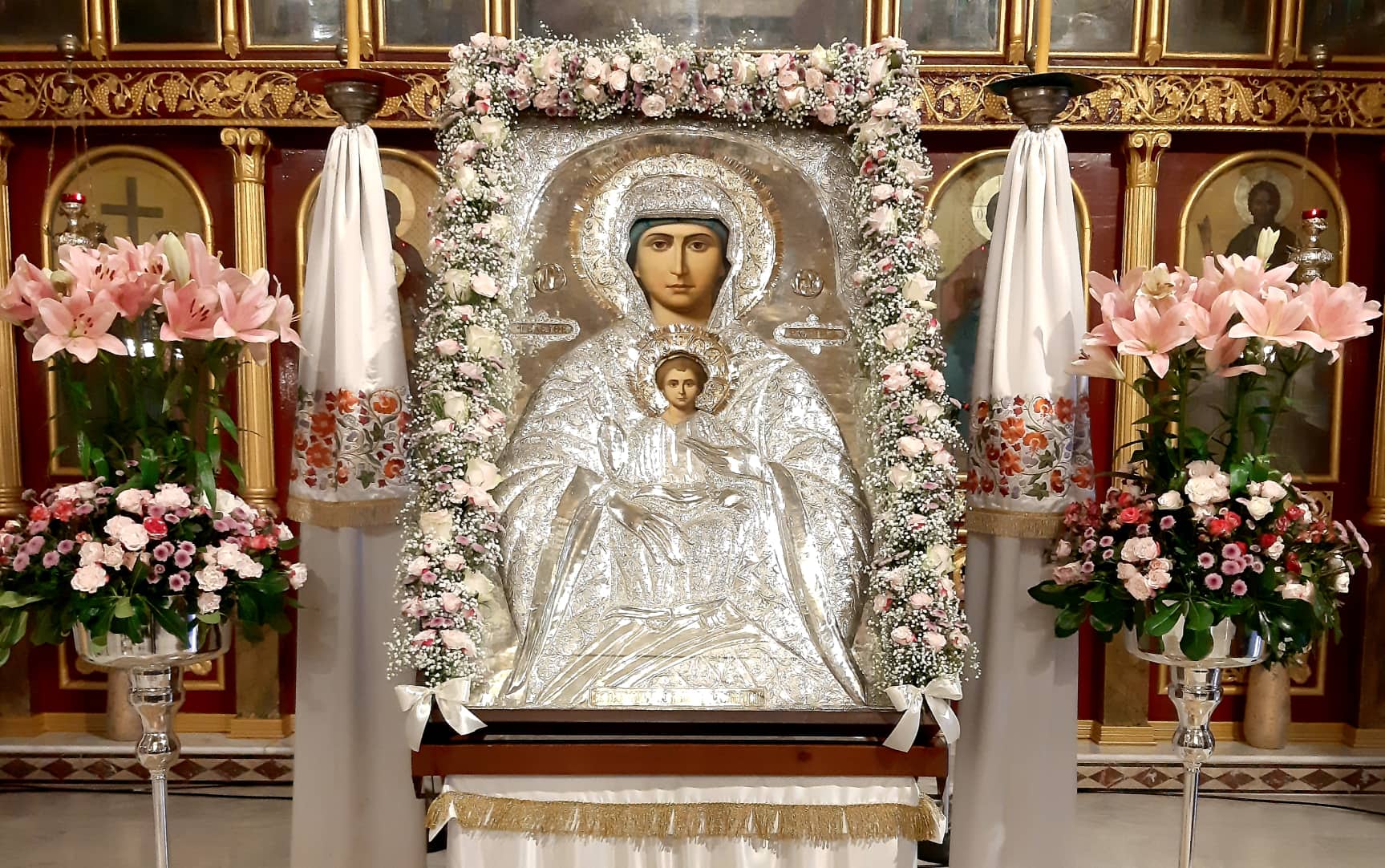 Πλήθος κόσμο συνέρρευσε και φέτος στον Ιερό Ναό Αγίων Κωνσταντίνου και Ελένης για τους εορτασμούς της Παναγίας Ελευθερώτριας, η Ιερά Εικόνα της οποίας φυλάσσεται εκεί.