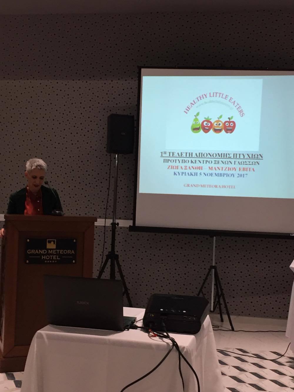 Πραγματοποιήθηκε με μεγάλη επιτυχία την Κυριακή η 1η Απονομή Πιστοποιητικών Γλωσσομάθειας απο το Προτυπο Κέντρο Ξένων Γλωσσών «ΖΙΩΓΑ ΞΑΝΘΗ – ΜΑΝΤΖΙΟΥ ΕΒΙΤΑ» στο Grand Meteora Hotel στο Καστράκι. Την σημερινή απονομή πτυχίων παρακολούθησαν γονείς και μαθητές αλλα και φίλοι του σχολείου, όπου είχαν την ευκαιρία παράλληλα να ενημερωθούν απο την κ.Κόκκαλη για το νέο πανελλαδικό εκπαιδευτικό project «Healthy Little Eaters» στο οποίο συμμετέχει το φροντιστήριο απο φέτος. Ένα πρόγραμμα με προσανατολισμό στην υγιεινή διατροφή και τη σωστή καθοδήγηση των παιδιών σε αυτή.