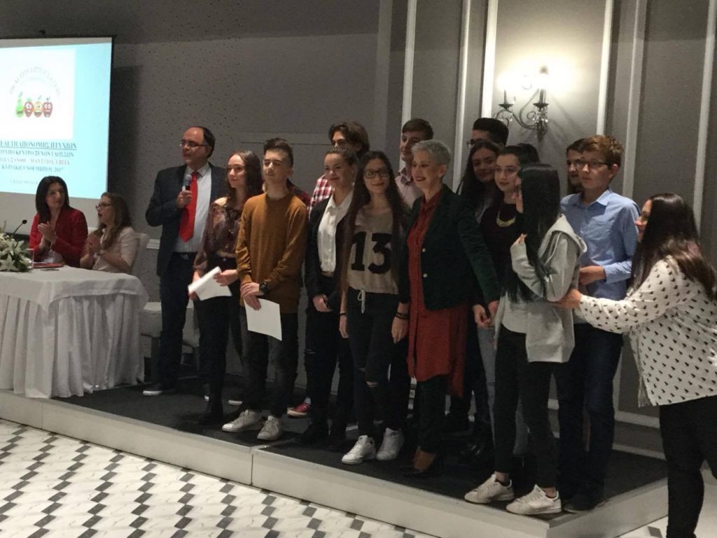 Πραγματοποιήθηκε με μεγάλη επιτυχία την Κυριακή η 1η Απονομή Πιστοποιητικών Γλωσσομάθειας απο το Προτυπο Κέντρο Ξένων Γλωσσών «ΖΙΩΓΑ ΞΑΝΘΗ – ΜΑΝΤΖΙΟΥ ΕΒΙΤΑ» στο Grand Meteora Hotel στο Καστράκι. Την σημερινή απονομή πτυχίων παρακολούθησαν γονείς και μαθητές αλλα και φίλοι του σχολείου, όπου είχαν την ευκαιρία παράλληλα να ενημερωθούν απο την κ.Κόκκαλη για το νέο πανελλαδικό εκπαιδευτικό project «Healthy Little Eaters» στο οποίο συμμετέχει το φροντιστήριο απο φέτος. Ένα πρόγραμμα με προσανατολισμό στην υγιεινή διατροφή και τη σωστή καθοδήγηση των παιδιών σε αυτή.