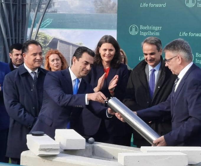 Τον πρωθυπουργό Κυριάκο Μητσοτάκη συνόδευσε σήμερα στην τελετή θεμελίωσης της νέας πτέρυγας του εργοστασίου της φαρμακευτικής εταιρείας Boehringer Ingelheim, στο Κορωπί ο υπουργός Ανάπτυξης Κώστας Σκρέκας.