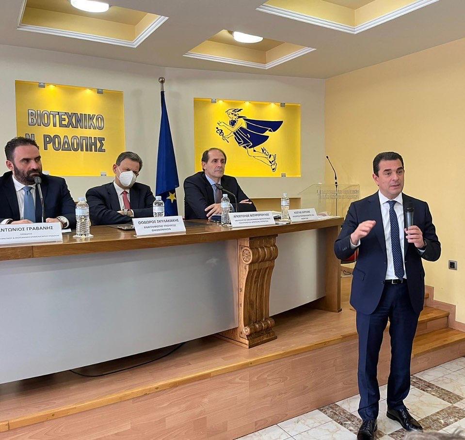 Το μεσημέρι, παρουσία του Πρωθυπουργού Κυριάκου Μητσοτάκη, ο κ. Σκρέκας παρουσίασε, το Αναπτυξιακό Πρόγραμμα της Θράκης στους τομείς της Ενέργειας και του Περιβάλλοντος.