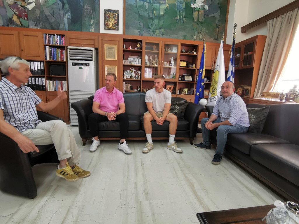 Στη συνάντηση παρέστη ο αντιπρόεδρος της ΔΕΥΑΤ Αντώνης Τζερεμές και ο πατέρας του πρωταθλητή, Γιάννης Χρυσούλας.