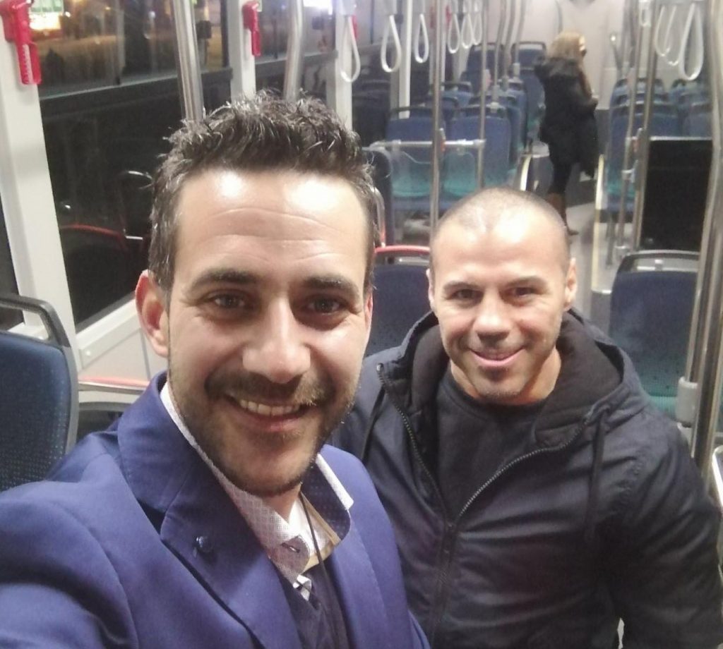 Ο παγκόσμιος πρωταθλητής του κικ μποξ περπάτησε στο κέντρο της πόλης ενώ μετακινήθηκε προς το “Μύλο των Ξωτικών” με το ηλεκτρικό λεωφορείο του Αστικού ΚΤΕΛ Τρικάλων. Διακρίνεται με τον οδηγό αυτού Θοδωρή Σκρέκα.