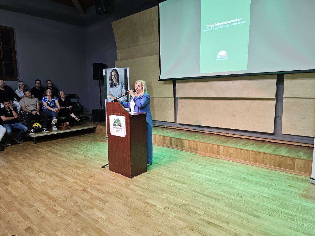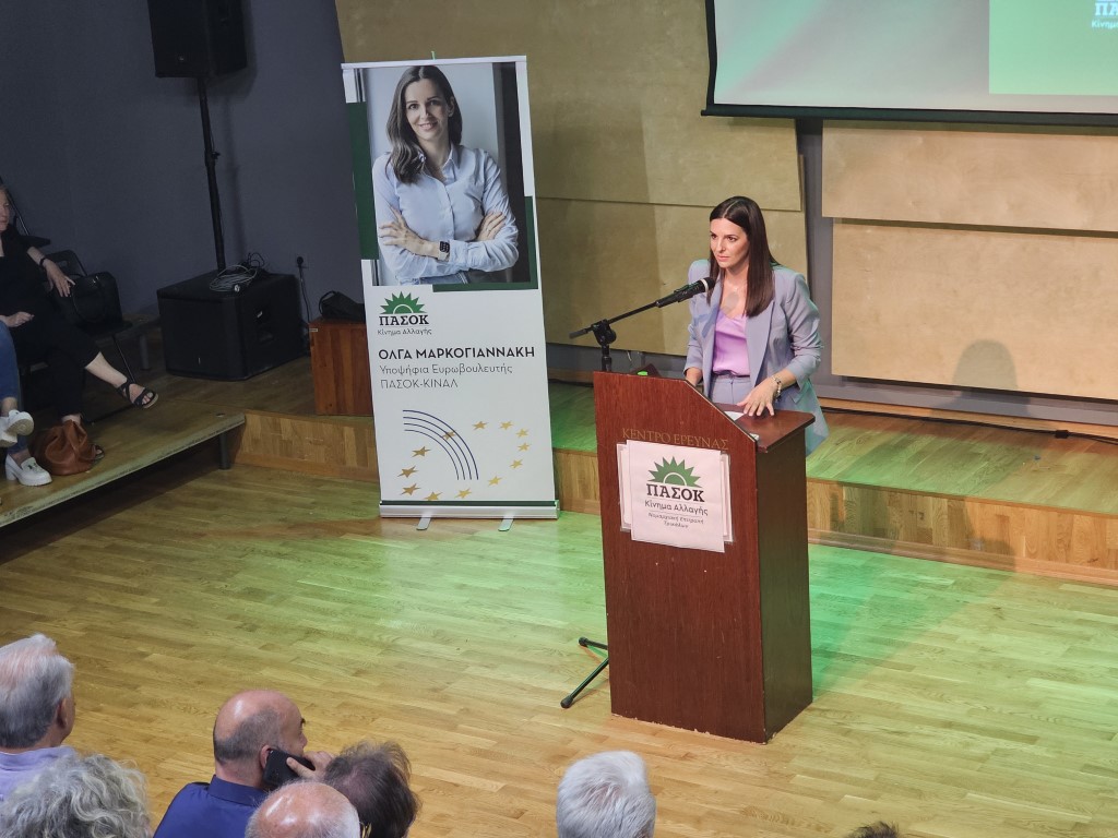 “Πριν 3 μήνες” είπε η Όλγα Μαρκογιαννάκη “ξεκίνησα ένα ταξίδι σε όλη την Ελλάδα. Με στόχο να συμβάλω κι εγώ με όλες μου τις δυνάμεις στην αλλαγή που έχει ανάγκη η χώρα μας. Να μεταφέρω το μήνυμα ότι Μπορούμε και Αξίζουμε περισσότερα για την Ελλάδα και την Ευρώπη. Κίνητρο και δύναμη σε αυτή τη διαδρομή είναι η οικογένεια μου. Οι φίλοι μου. Οι συμπολίτες μου. Γιατί μοιραζόμαστε όλοι τα ίδια προβλήματα. Την ακρίβεια στο σούπερ μάρκετ. Τον αγώνα να διατηρήσουμε τη δουλειά μας. Να κρατήσουμε όρθια την επιχείρηση μας. Να έχουμε ίσες ευκαιρίες. Ίσες ευκαιρίες για τις γυναίκες. Στην εργασία, τις αμοιβές. Ζητώ τη στήριξή σας. Ζητώ τη συμμετοχή σας, για να συνεχίσουμε ακόμα πιο δυνατά, ακόμα πιο τολμηρά”.