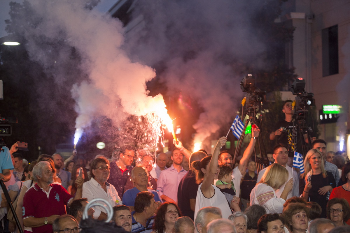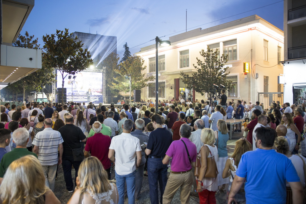 Πράγματι, ο πεζόδρομος της Ασκληπιού αποδείχθηκε πολύ στενός για να χωρέσει τους χιλιάδες συμπολίτες μας που με σημαίες, συνθήματα και… καπνογόνα δημιούργησαν προεκλογικό κλίμα άλλων εποχών.