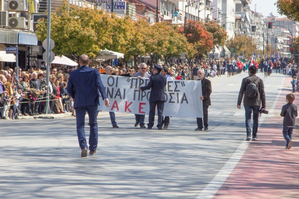 Όπως κατέγραψε το trikalavoice.gr διαδηλωτές, κρατώντας πανό του ΑΚΕΠ κατά της συμφωνίας των Πρεσπών, εισήλθαν στο χώρο και επιχείρησαν να παρελάσουν. Τους σταμάτησαν οι αστυνομικοί και το επεισόδιο έληξε ομαλά.