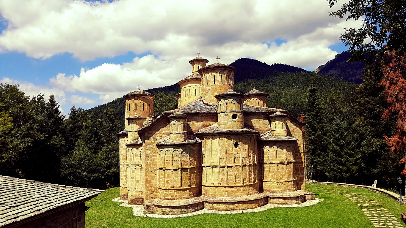 Σύμφωνα με τα στοιχεία που συλλέγει το trikalavoice.gr χρονολογείται από τον 17ο αιώνα, δίχως ωστόσο να υπάρχουν έγγραφες πληροφορίες για την ακριβή χρονολογία και εκεί εγκαταβιούσαν άντρες μοναχοί. Κάηκε χωρίς να καταστραφεί εντελώς από τους Γερμανούς το φθινόπωρο του 1943. Είναι κτισμένο με πέτρα και σκεπασμένο με πλάκες και είναι ρυθμού Βασιλικής μετά τρούλων. Εκείνο που το κάνει μοναδικό είναι οι δεκατρείς (13) συνολικά τρούλοι του.