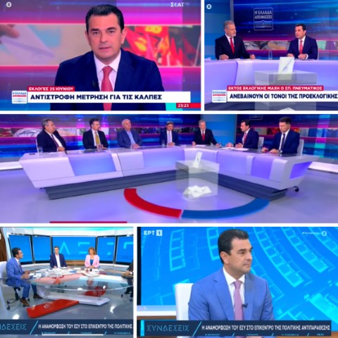Μετά την Πέμπτη και την παρουσία του υποψηφίου βουλευτή της ΝΔ στο Κεντρικό Δελτίο ειδήσεων του ΑΝΤ1 και τον Νίκο Χατζηνικολάου, σειρά είχε την Παρασκευή το πρωί, η ΕΡΤ και η εκπομπή Συνδέσεις με τους Κώστα Παπαχλιμίντζο και η Χριστίνα Βίδου, ενώ την Παρασκευή το βράδυ ήταν προσκεκλημένος στην έκτακτη προεκλογική εκπομπή του SKAI, με τον Γιάννη Παπαδόπουλο.