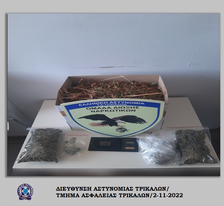 Συνελήφθη, σήμερα (02-11-2022) το πρωί σε περιοχή των Τρικάλων, από αστυνομικούς του Τμήματος Ασφάλειας Τρικάλων, ένας ημεδαπός, σε βάρος του οποίου σχηματίστηκε δικογραφία για παραβάσεις της νομοθεσίας περί ναρκωτικών.