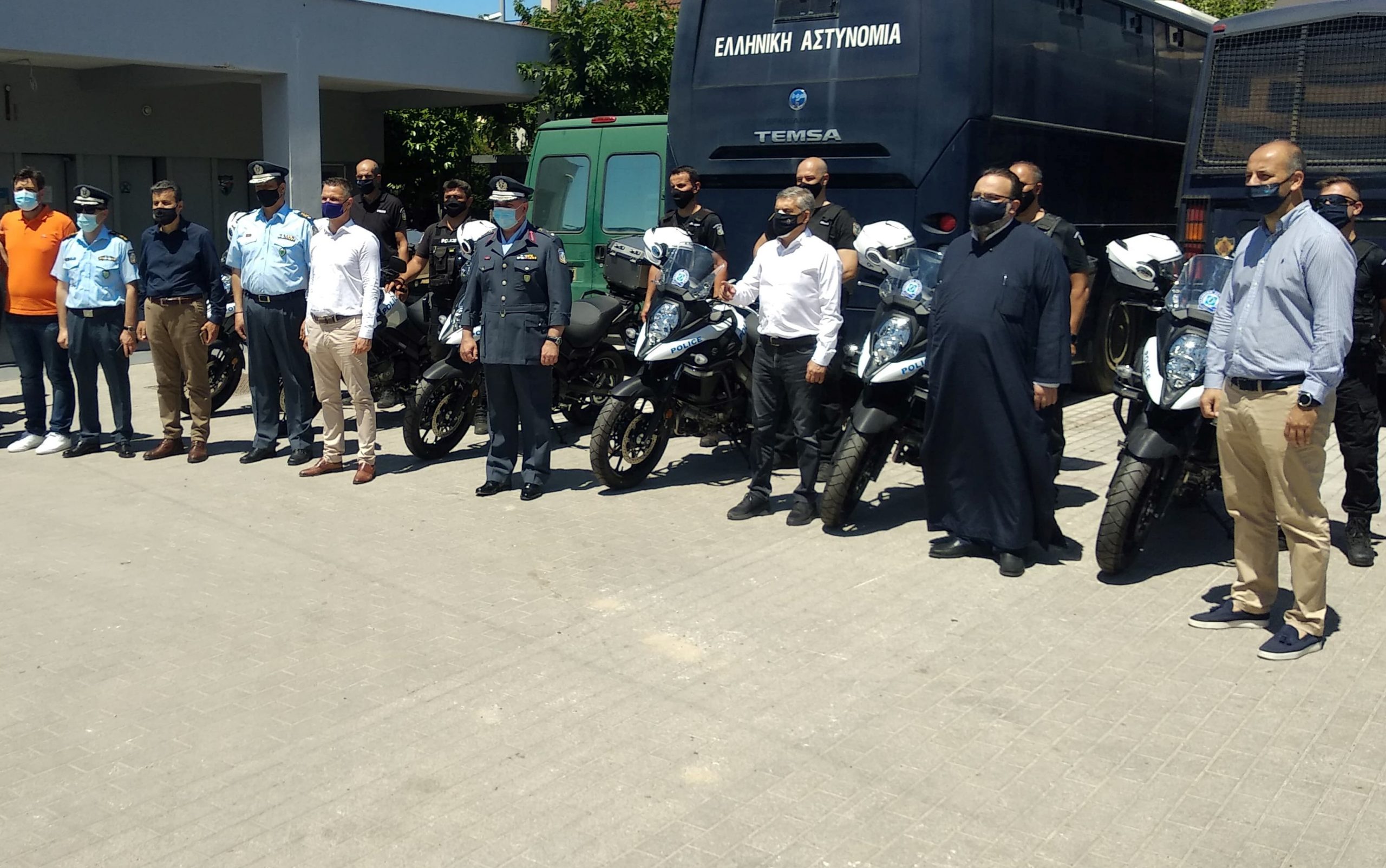 O Γενικός Περιφερειακός Αστυνομικός Διευθυντής Θεσσαλίας, Ταξίαρχος Αστέριος Μαντζιώκας, συνοδευόμενος από τον Διευθυντή της Διεύθυνσης Αστυνομίας Λάρισας, Ταξίαρχο Χρήστο Σιμούλη, επιθεώρησαν τις παραληφθείσες μοτοσικλέτες, ενώ επιπλέον τελέσθηκε αγιασμός, από τον Πανοσιολογιότατο κ.κ.Βαρθολομαίο.