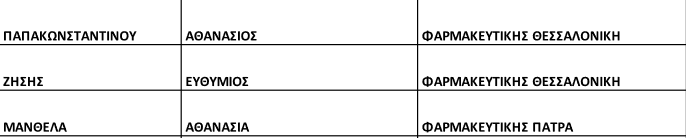 Εκτός των 18 παιδιών που πέτυχαν την εισαγωγή τους σε Ιατρικές Σχολές (δείτε ΕΔΩ) στο ενεργητικό του φροντιστηρίου καταγράφεται και η επιτυχία 3 παιδιών στις φαρμακευτικές σχολές, όπως φαίνεται παρακάτω: