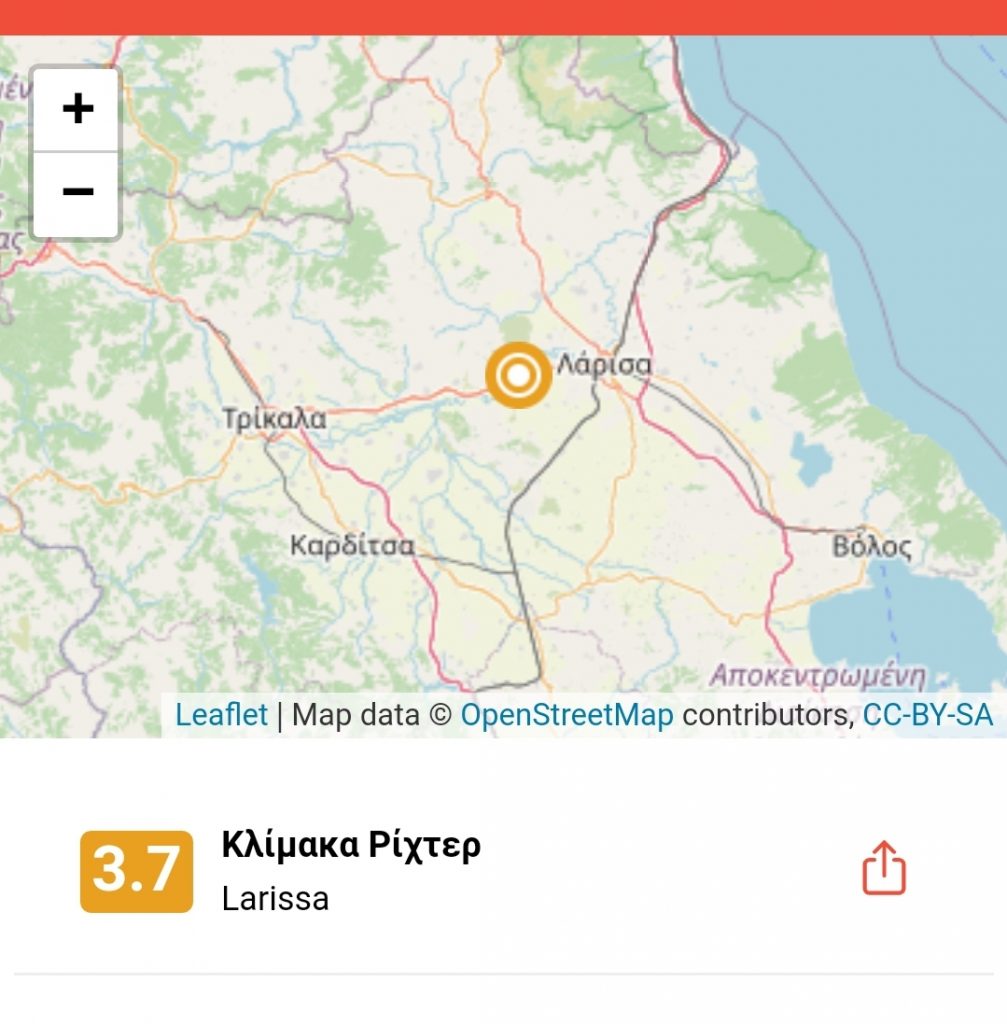 Ο πρώτος σημειώθηκε στις 20.00 ακριβώς 16 χιλιόμετρα Δυτικά της Λάρισας, προς το σημείο που παρατηρείται έντονη σεισμική δραστηριότητα τις τελευταίες μέρες και ο δεύτερος 3,7 Ρίχτερ στις 20.07.