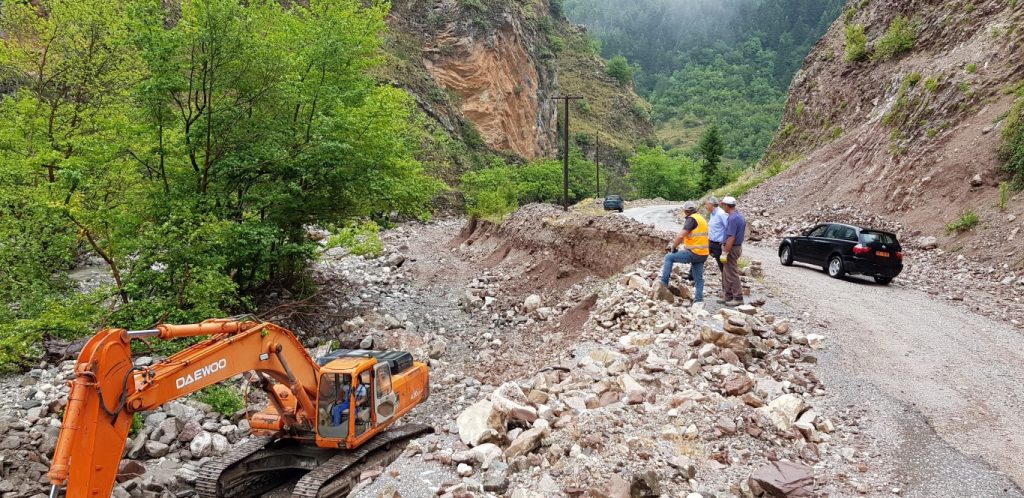 Σε εξέλιξη οι εργασίες αποκατάστασης του δρόμου που είχε καταρρεύσει από τις πλημμύρες του 2016.