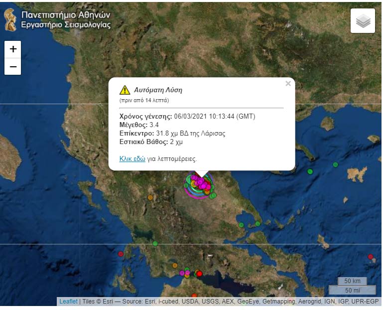 Νέα ισχυρή μετασεισμική δόνηση σημειώθηκε στις 12.13 μ.μ. του Σαββάτου, με επίκεντρο την ίδια περιοχή της Ελασσόνας.