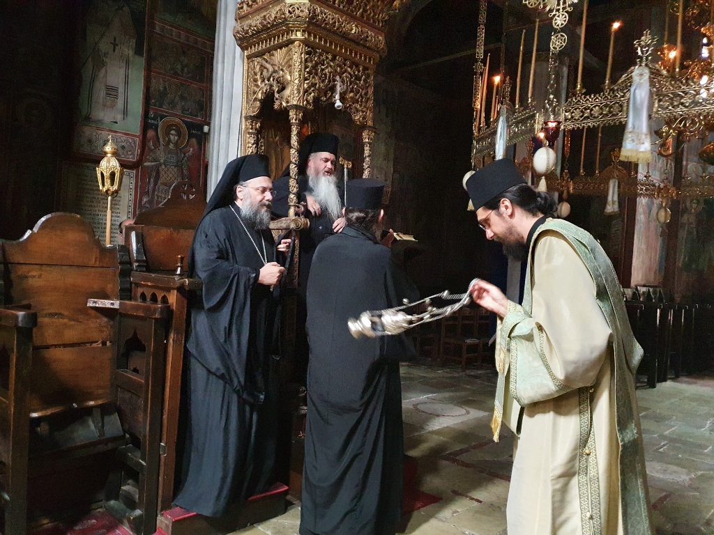 Η Ακολουθία της Ρασοφορίας τελέσθηκε από τον παρεπιδημούντα στην επαρχία μας Μητροπολίτη Νέας Κρήνης και Καλαμαριάς Ιουστίνο και τον κυριάρχη Μητροπολίτη Τρίκκης και Σταγών Χρυσοστόμου, στο Καθολικό της ιστορικής Μονής.