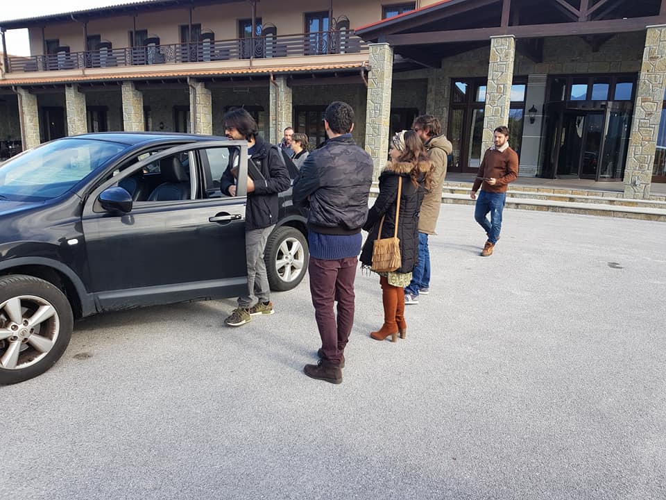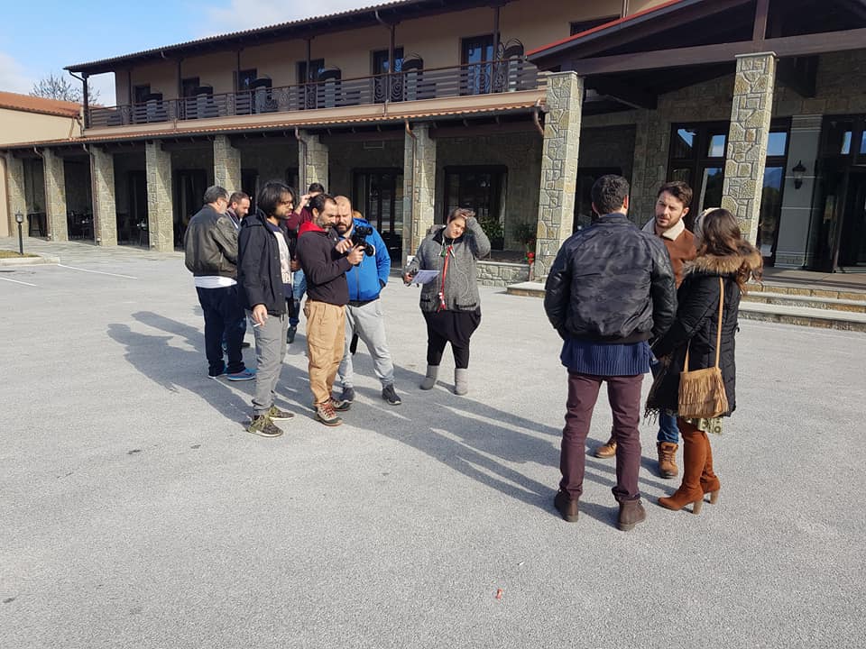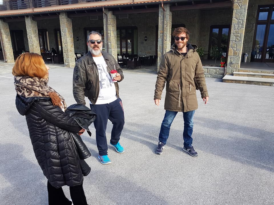 Στη πρώτη φωτό του trikalavoice.gr διακρίνονται ο Γιώργος Αγγελόπουλος και ο σκηνοθέτης της σειράς Ανδρέας Γεωργίου, με τον ιδιοκτήτη του ξενοδοχείου όπου έχει καταλύσει όλο το τιμ, δημοτικό σύμβουλο Καλαμπάκας, Γιάννη Παπαπούλιο.