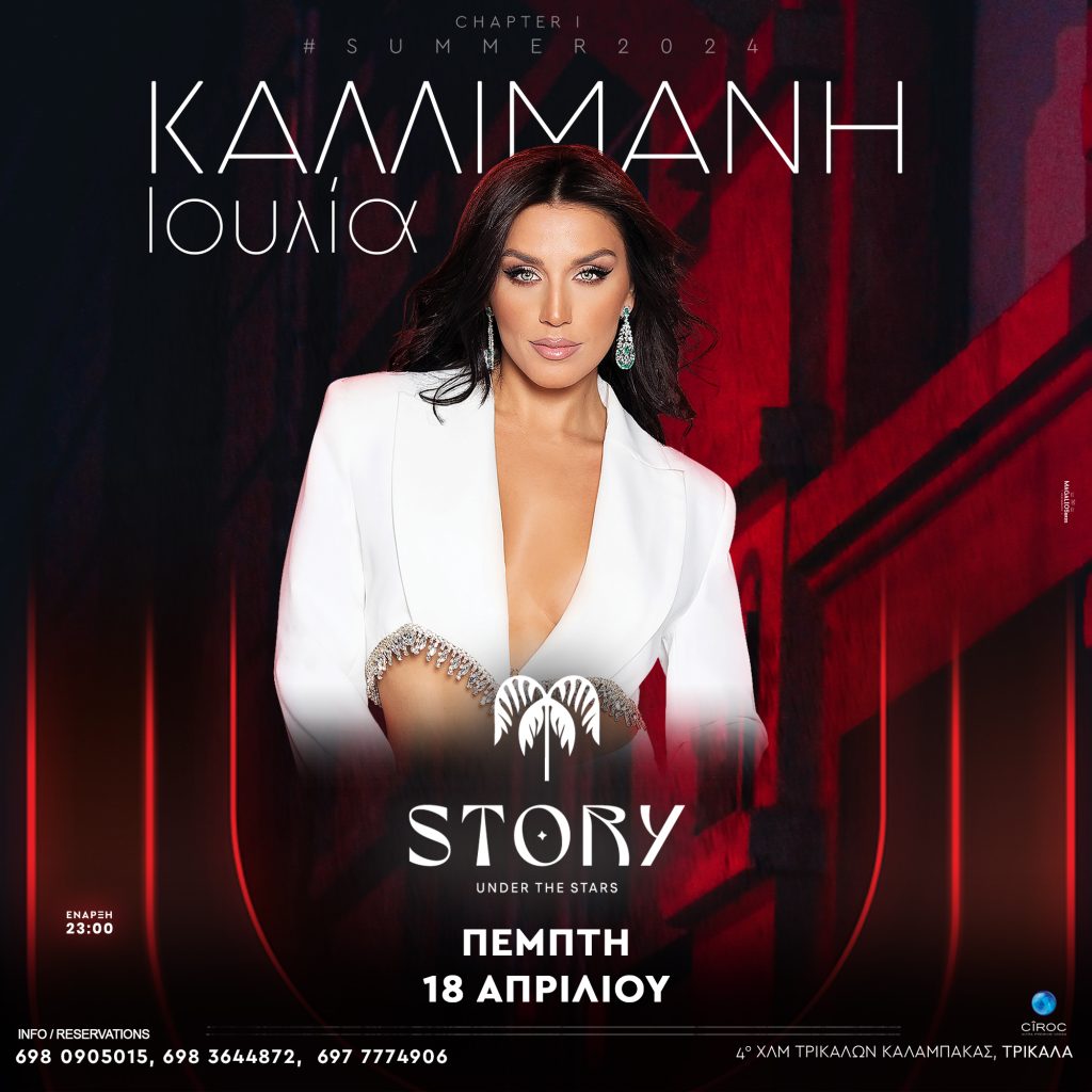 Λόγω των υπεράριθμων κρατήσεων , η εκδήλωση που θα πραγματοποιηθεί στις 18 Απριλίου στο Akron Live Stage με πρωταγωνίστρια την ανερχόμενη και αγαπημένη τραγουδίστρια Ιουλία Καλλιμάνη , μεταφέρεται στο Story – Under the Stars.
