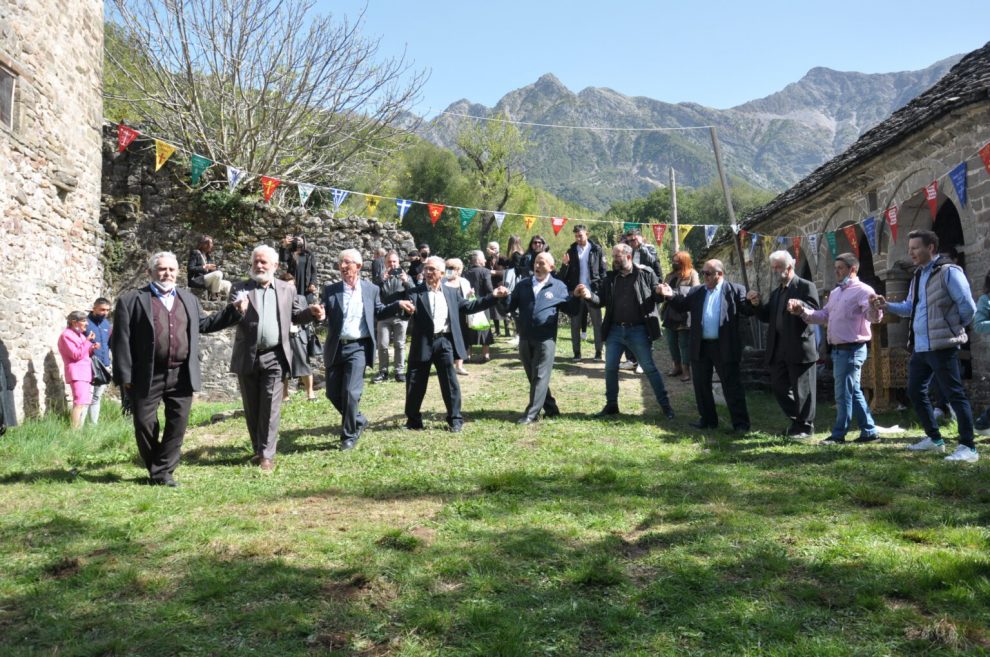 Πλήθος πιστών κατέκλυσε ξανά μετά από δυο χρόνια την Ιερά Μονή Αγίου Γεωργίου στο Μυρόφυλλο Τρικάλων ανήμερα της εορτής του Αγίου Γεωργίου τη Δευτέρα 25 Απριλίου 2022. Πρόκειται για το ξακουστό πανηγύρι της περιοχής λόγω της ονομαστής μονής που δεσπόζει στις όχθες του Αχελώου και της χάρης του αγίου. Μετά την Πανηγυρική Θεία Λειτουργία ακολούθησε ο «χορός των γερόντων». Πρόκειται για τελετουργικό χορό προς τιμή του Αγίου που τραγουδιέται αντιφωνικά. «Τώρα είναι Μάης κι Άνοιξη, τώρα το καλοκαίρι…» Ακολούθησε χορός από όλο τον κόσμο.
