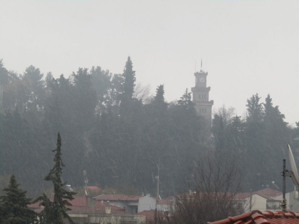 Ξεκίνησε λίγο μετά τις 2 μ.μ. η χιονόπτωση, ασθενής για την ώρα, και μέσα στην πόλη των Τρικάλων.