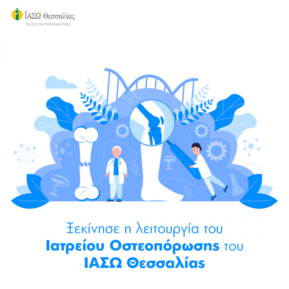 Το Ιατρείο Οστεοπόρωσης του ΙΑΣΩ Θεσσαλίας λειτουργεί Τρίτη & Πέμπτη 16:00 – 21:00κατόπιν ραντεβού στα τηλέφωνα: 2410996000 & 2410996014