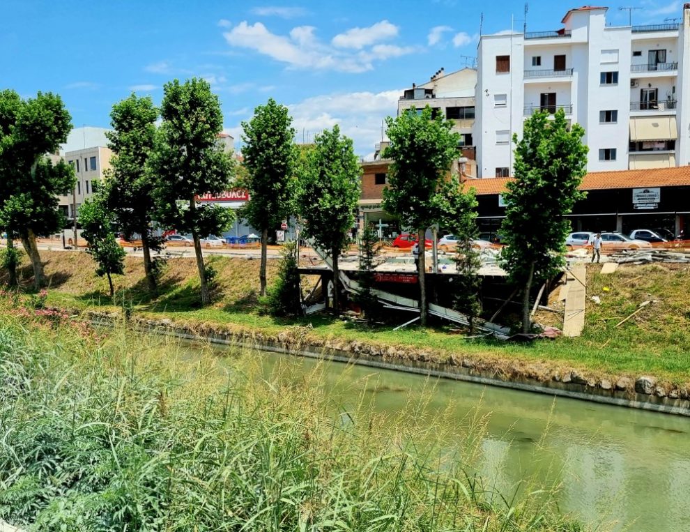 Έπειτα από 20 και πλέον χρόνια και πολλές συζητήσεις και δικαστικές διαμάχες η πέργκολα στις όχθες του Ληθαίου ποταμού επί της οδού Ιακωβάκη ξηλώθηκε.