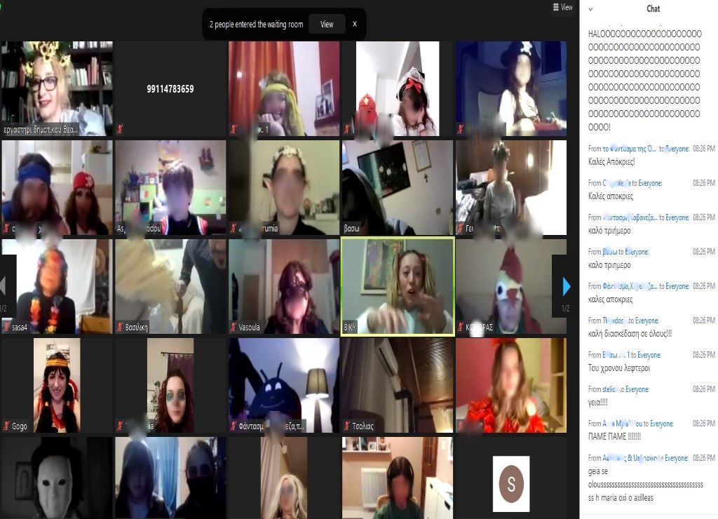 Και οι μεταμφιεσμένοι/ες σπουδαστές και σπουδάστριες, απηύθυναν χαιρετισμό, μίλησαν για το κουστούμι που φρόντισαν να φορέσουν έστω και από το σπίτι, χόρεψαν σε ρυθμούς Αποκριάς, αντήλλαξαν ευχές, είδαν ζωντανά κλήρωση δώρων εν είδει κοπής πίτας, μέσω εντός «τροχού τύχης». Ακολούθησε διαδικτυακό πάρτι, μια μικρή γιορτή με χορό και τραγούδι, από το σπίτι καθενός και καθεμιάς. Ευχή όλων, να συνεχιστεί με διαπροσωπική επαφή πια, όταν λήξει η πανδημία, η θεατρική αγωγή που αυτήν την περίοδο το Δημοτικό Θέατρο Τρικάλων υλοποιεί διαδικτυακά.