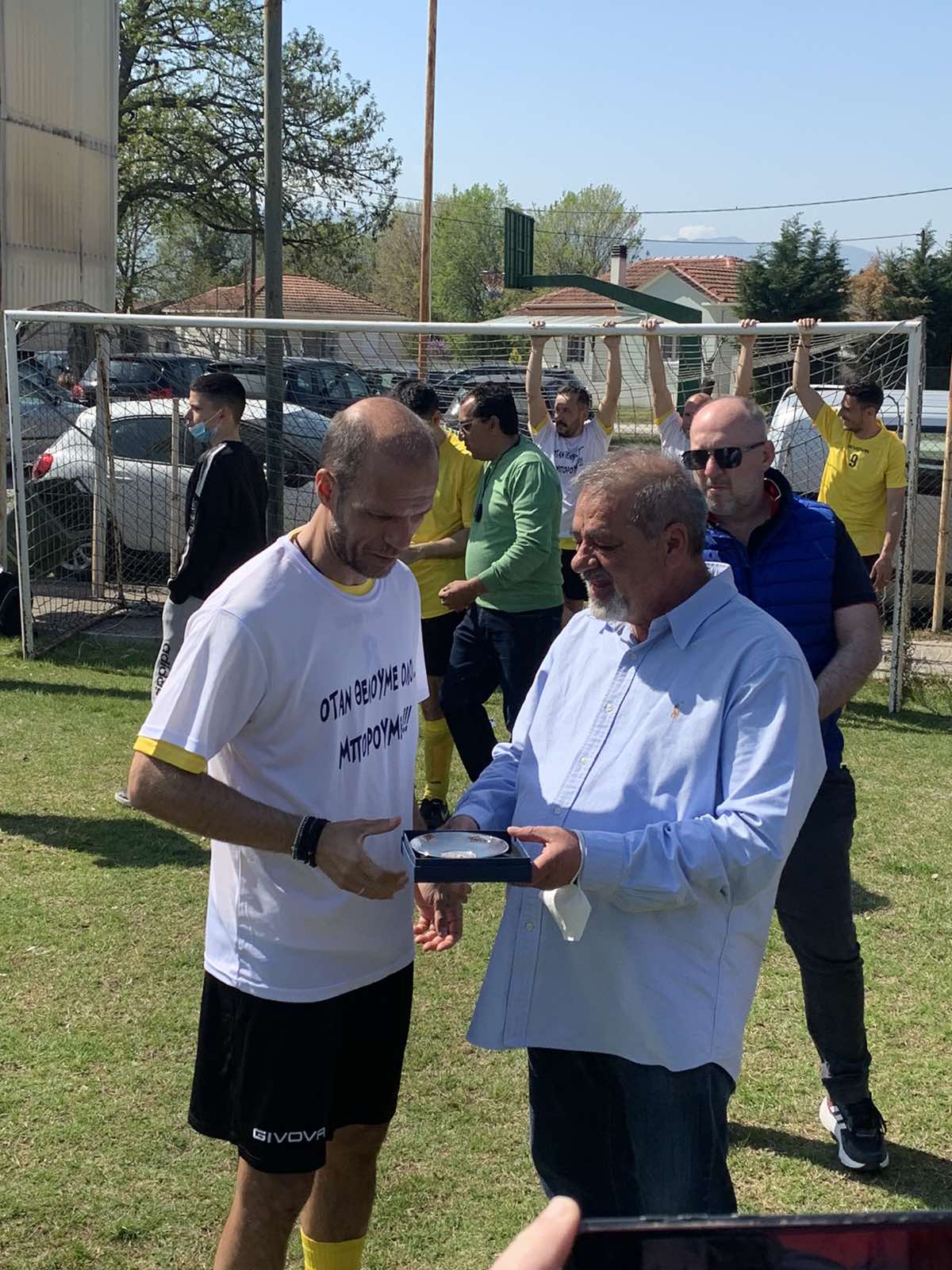 Η παρουσία του πρωταθλητή Ευρώπης Άγγελου Μπασινά και των γνωστών παλαίμαχων Τρικαλινών ποδοσφαιριστών Γιώργου Βακουφτσή και Σωτήρη Κυργιάκου, έδωσε ξεχωριστό χρώμα σε μία αναμέτρηση για καλό σκοπό, αφού τα χρήματα που συγκεντρώθηκαν θα διατεθούν για την αγορά προϊόντων για οικογένειες που έχουν ανάγκη.