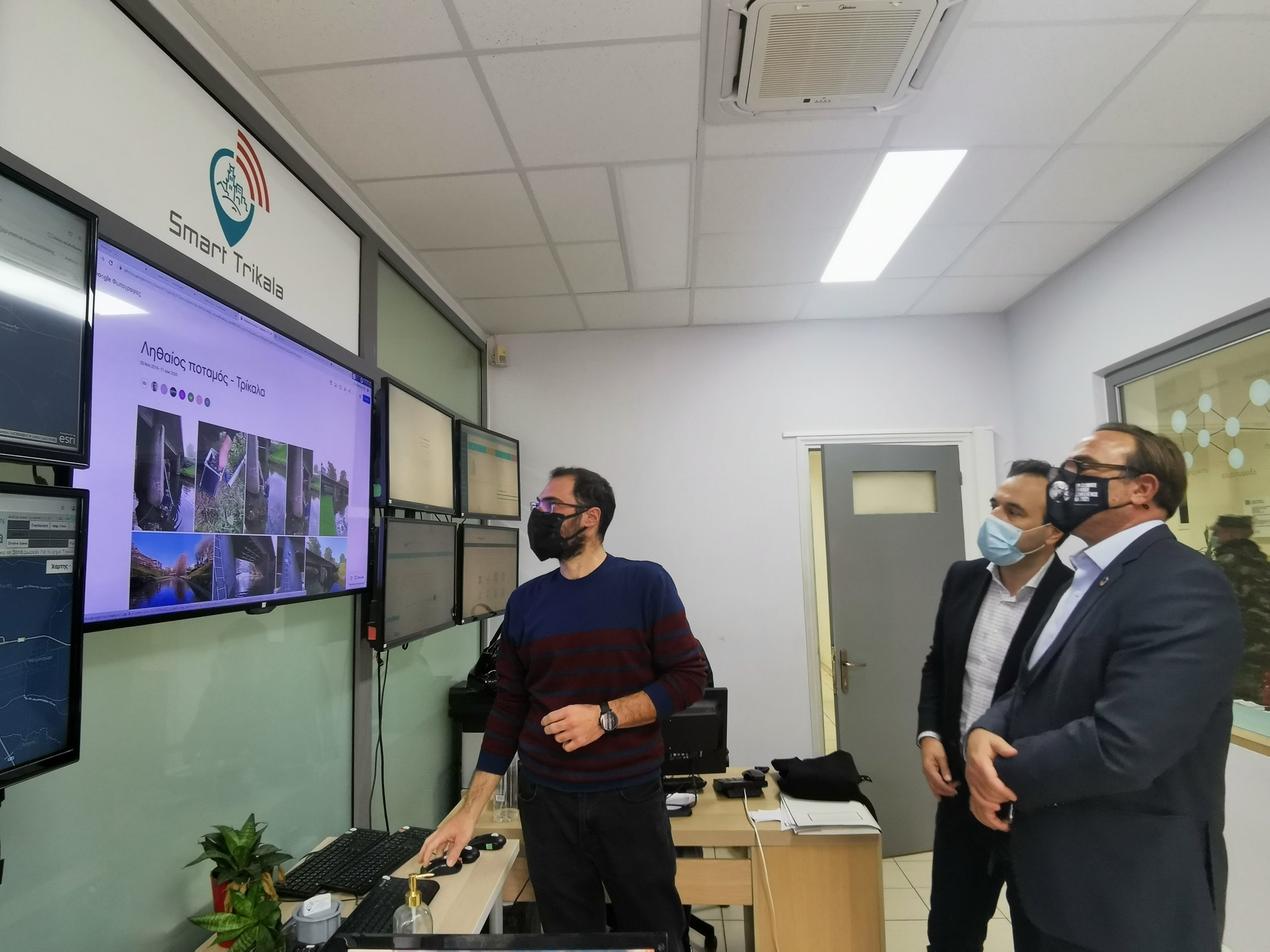 Στο control room του Smart Trikala παρουσιάστηκαν όλες οι δράσεις, με έμφαση να δίνεται στη διαχείριση των αιτημάτων των πολιτών, αλλά και στα περιβαλλοντικά ζητήματα: περιβαλλοντικές μετρήσεις (ποιότητα πόσιμων υδάτων, ποιότητα νερού ποταμού Ληθαίου, ηλεκτρομαγνητική ακτινοβολία, ποιότητα αέρα), μετεωρολογικοί σταθμοί, διαχείριση αντλιοστασίων λυμάτων, παρακολούθηση συστήματος ύδρευσης με τηλε-έλεγχο, διαχείριση στόλου απορριμματοφόρων και οχημάτων Δήμου, αλλά και το Σύστημα Αποτρεπτικής Στάθμευσης ΑμεΑ.
